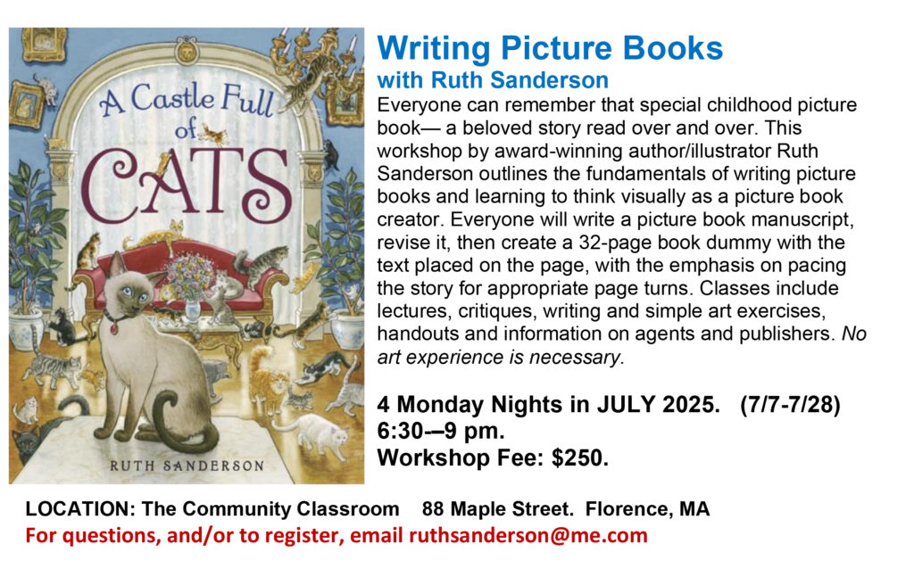 News CLASSES in Writing and Illustrating Picture Books I haven’t offered classes in writing and illustrating here in Massachusetts for many years. If you are around in July, I’m offering them on Monday and Thursday evenings in Florence, MA. (Near Northampton) Previous SPRING IS HERE! Newer Free Chapter from The Mirror of Truth You May Also Like THE MIRROR OF TRUTH July 15, 2025 NEW PRINTS and BOOKS added to SHOPS November 23, 2024 Three Amigos October 25, 2023